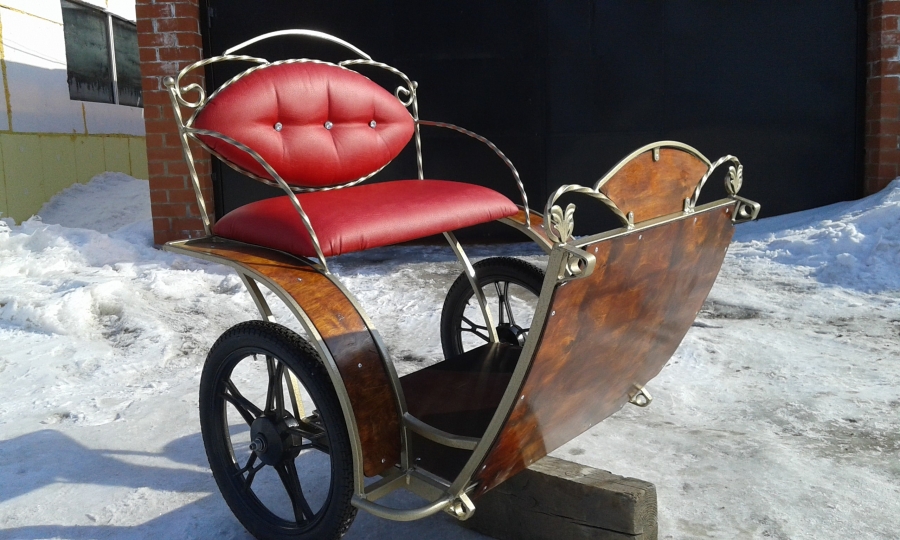 Разрабатывая эту модель, наши мастера не забыли про элегантность и красоту. Украшают конструкцию элементы художественной ковки. Цвет обивки сидений возможен любой на выбор заказчика.
