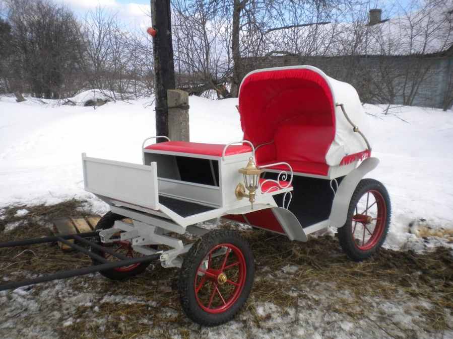 Модель рассчитана на четыре пассажирских места и идеально подойдет для летних загородных прогулок. Мягкие рессоры и пневматические колеса позволяют с комфортом путешествовать по пересеченной местности. Металлические части фаэтона покрыты полимерным, порошковым покрытием, стойким к атмосферным воздействиям и истиранию.