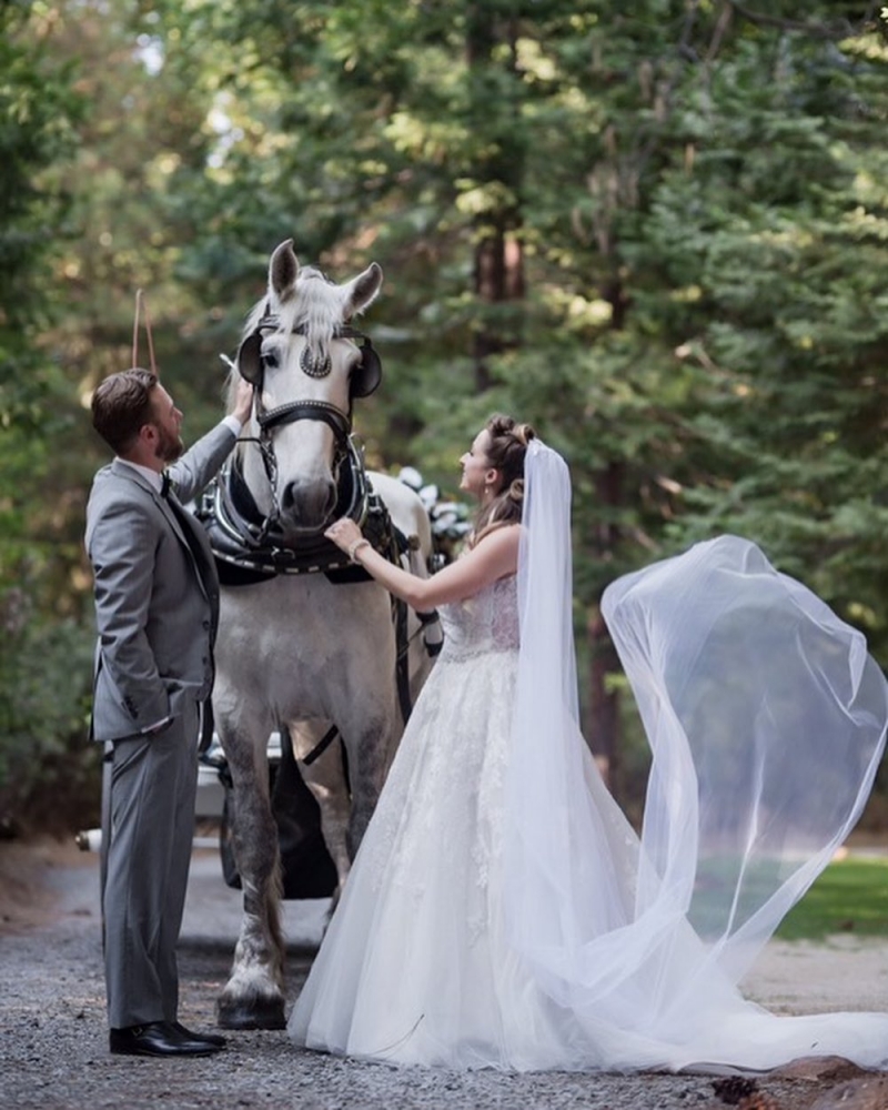 Определенно есть что-то волшебное в том, чтобы проехаться в день свадьбы в карете, запряженной лошадьми. Конный экипаж привнесет романтики вашему свадебному дню и позволит получить красивые фотографии.